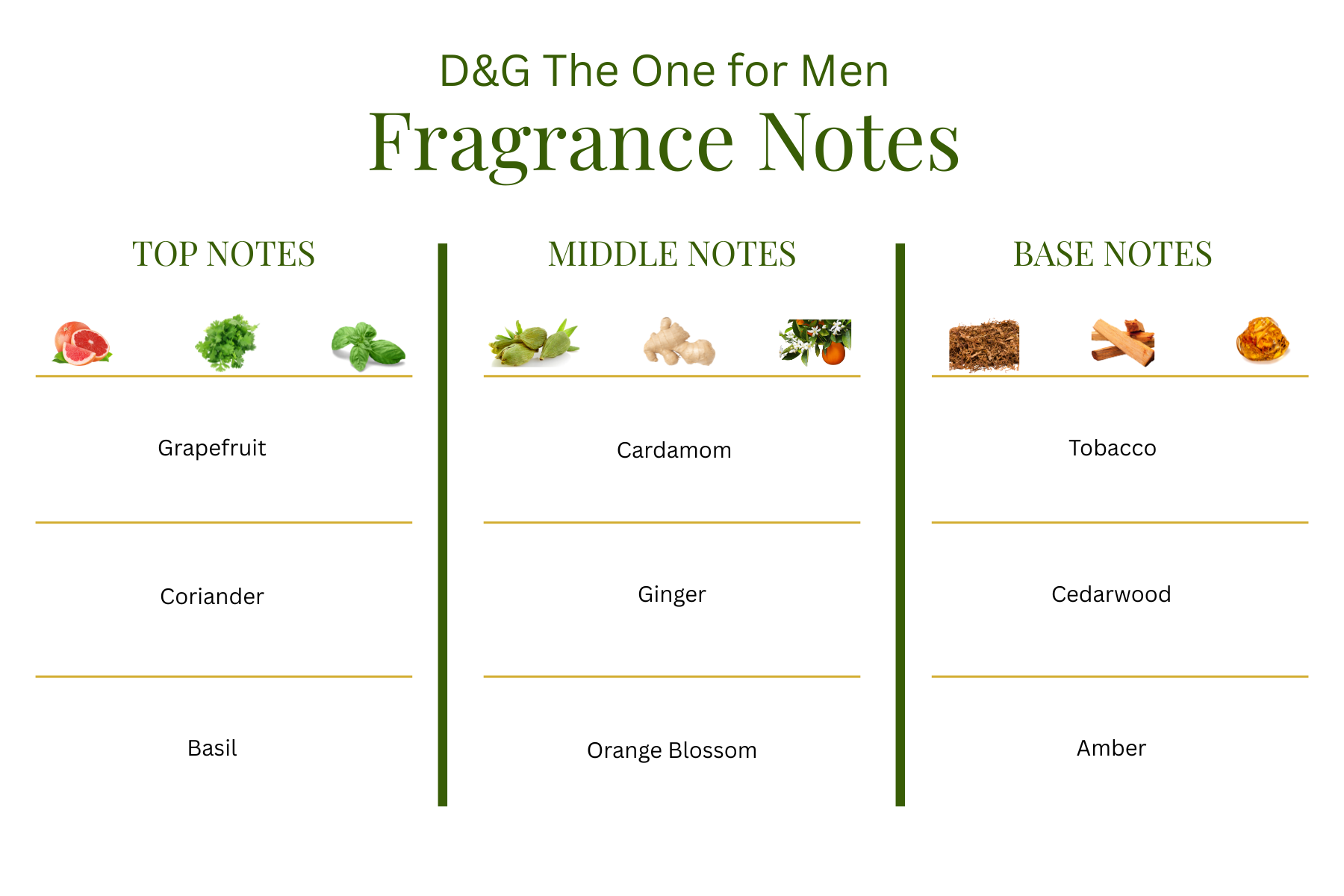 INSPIRADO EN D&G THE ONE FOR MEN: Una fragancia oriental sofisticada que combina especias vibrantes con cálidas notas de tabaco y ámbar. The One es elegante, masculina y atemporal, perfecta tanto para el día como para la noche.