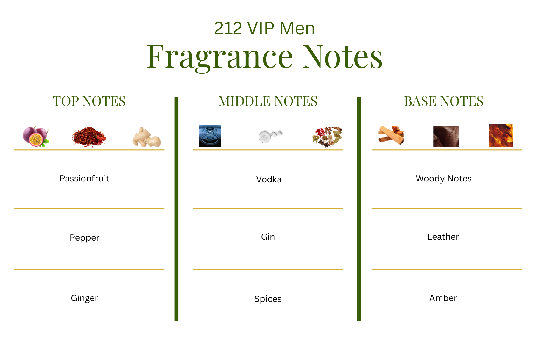 INSPIRADO EN 212 VIP MEN: Una fragancia enérgica y carismática que captura el espíritu de la vida nocturna. 212 VIP Men combina especias frescas, frutas vibrantes y cuero cálido: audaz, magnética y hecha para quienes dominan la fiesta.